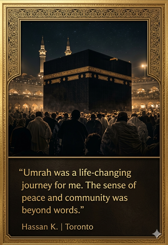 Fatima K. | Toronto, Canada"Answering the call to pilgrimage was the best decision I've ever made. My faith has deepened immeasurably. SafarAI's team supported us l ike family from start to finish."
